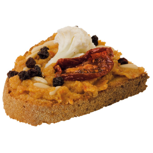 Ingredienti: Olio extra vergine d’oliva, cavolfiori, pomodoro secco, sale, passolina, pinoli, aglio, acciughe, succo di limone.