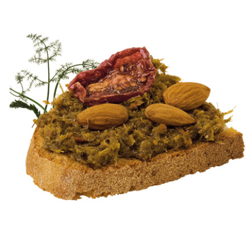 Ingredienti: Olio extra vergine d’oliva, finocchietto selvatico, pomodoro secco, sale, mandorle, succo di limone.