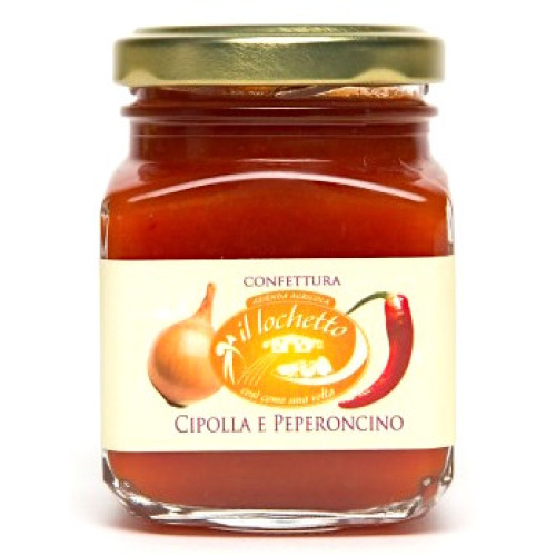 Confettura di cipolla e peperoncino, i due ortaggi più gustosi e apprezzati al Sud come in tutto il mondo, uniti in un prodotto dolce dal gusto piccante e avvolgente. Grazie alla sua estrema versatilità può essere gustato assieme a formaggi, carni, panini, tramezzini, ricette originali e street food. Il gusto della cipolla, con il piccante del peperoncino, è utilizzato per i famosi panini con porchetta, con un delicatissimo equilibrio tra dolce e salato, o per creazioni da forno come torte salate o fagottini alla carne. Ottimo su formaggi stagionati o provola dei Nebrodi, su carni rosse e con i salumi per un aperitivo eccellente. Abbinamento enologico consigliato : Chardonnay, Moscato o prosecco. Prodotto da Azienda Agricola Il Lochetto - San Salvatore di Fitalia (ME)