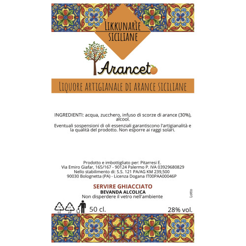 Liquore alle arance di Sicilia, prodotto artigianalmente in Sicilia con arance del territorio siciliano, volume alcoolico 28%. Dalla raccolta alla produzione, in provincia di Palermo, questo liquore ha il pregio di essere siciliano al 100%, artigianale e caldo nel gusto, profumatissimo nell'aroma e capace di donare ad un dopo cena o una riunione tra parenti e amici, una atmosfera di calore e freschezza allo stesso tempo.