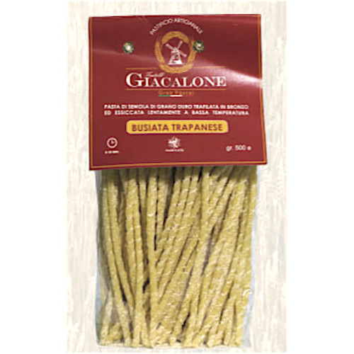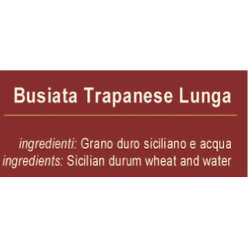 Busiate trapanesi artigianali lunghe, pacchi da 500 grammi in vendita a cartone da 24. la scadenza è fino a due anni. Le busiate sono il piatto tipico trapanese primario, utilizzato per ricette festive e nella ristorazione, per menù invitanti e appetitosi sia a base di carne che pesce. L'origine di questo formato di pasta è legato alla tradizione della Sicilia occidentale, dove, così come avviene per il cannolo, l'impasto di questo formato di pasta veniva avvolto lungo il fusto di una pianta tipica, chiamato appunto "buso", per dare la forma attorcigliata.