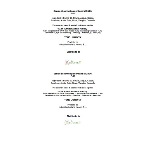 Quelle che vi proponiamo, sono bucce di cannolo MIGNON prodotte a Palermo e chiamate in dialetto siciliano "Cannulicchi", da una tra le più antiche e storiche fabbriche di dolci palermitani (dal 1840), che vi assicuriamo riuscirà a trasferire ovunque nel mondo il reale gusto delle tradizioni siciliane.
